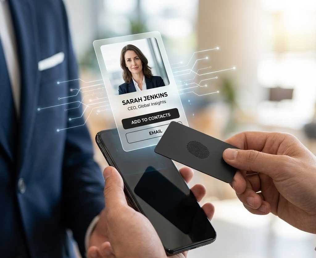 - Your customers click on the link or scan your QR code, see your profile and have the ability to save your contact details to their phones.